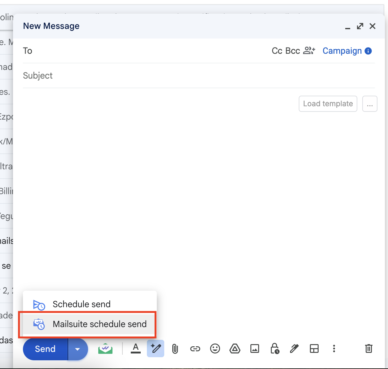 2) Select Mailsuite schedule send.